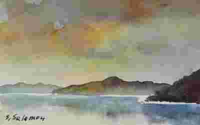 Namalowana na profesjonalnym, grubym papierze wysokiej jakości akwarelami.