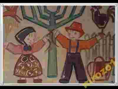 " Szczepienia" o wymiarach - szerokość 30cm x 21cm, namalowaną na kartonie w roku 1955. Akwarela została namalowana po przyjściu na świat córek bliźniaczek .