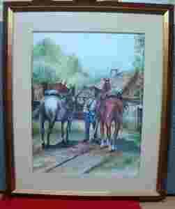 Akwarela Ułan. Sygnowana .Szklo antyrefleksyjne.