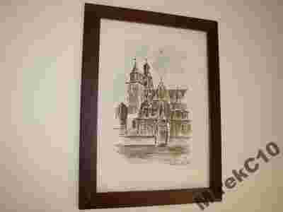 Akwarela w ramce za szkłem- Kraków