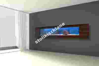 Akwarium na ścianę, jest to nowość na naszym rynku. Akwarium ścienne przypomina żywy obraz ale jest prawdziwym akwarium do hodowli rybek akwariowych, super efekt. Idealnie nadaje się do salonów, gabinetów, firm. Wymiar zewnętrzny 250/40cm głębokość 11cm. Wymiar samego szkła 190/28cm, głębokość 10cm.W zestawie akwarium są: mocowania do ściany, tło akwarium 2x, filtr wewnętrzny, grzałka z termostatem, termometr, oświetlenie LED, rama zewnętrzna w naturalnej okleinie dostępna w różnych kolorach lub lakierowane na wysoki połysk np. czarny lub biały oraz dodatki inne gratisowo. Jest wszystko co jest potrzebne do hodowli rybek akwariowych. Prosty montaż, jedynie nawiercenie 8 otworów otworów w ścianie fi 16 i fi 8mm. Od akwarium wychodzi jedynie jeden przewód, reszta kabli jest schowana pod obudową. Na zdjęciach kabla nie widać ponieważ został on schowany w ścianie. Kolory pokazane są na innych zdjęciach w galerii produktu. Istnieje możliwość wykonania ramy w dowolnym kolorze, ramy robione są z płyty mdf oklejonej naturalnym fornirem lub lakierowane na połysk. Wysoka jakość wykonania. Efektowny wygląd, polecam. Model ten jest robiony na zamówienie w terminie około 10dni