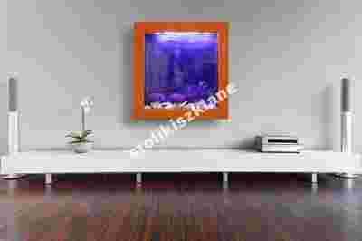 Akwarium na ścianę, jest to nowość na naszym rynku. Akwarium ścienne przypomina żywy obraz ale jest prawdziwym akwarium, super efekt. Idealnie nadaje się do salonów, gabinetów, firm. Wymiar zewnetrzny 80/80 cm głębokość niecałe 11cm. W zestawie akwarium są: mocowania do ściany, tło akwarium 2x do wyboru, filtr wewnętrzny, grzałka z termostatem, termometr, oświetlenie, rama zewnętrzna w naturalnej okleinie dostępna w różnych kolorach oraz dodatki inne gratisowo. Jest wszystko co jest potrzebne do hodowli rybek akwariowych. Jest prosty montaż, jedynie nawiercenie otworów w ścianie. Kolory pokazane są na innych zdjęciach. Istnieje możliwość wykonania ramy w dowolnym kolorze, ramy robione są z płyty mdf oklejonej naturalnym fornirem. Wysoka jakość wykonania. Efektowny wygląd, polecam. Prosty montaż, wystarczy nawiercić w ścianie trzy otwory i mocujemy prawie tak samo łatwo jak obraz, nic nie trzeba kuć w ścianie.