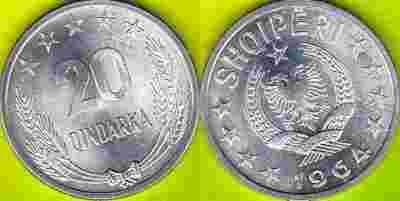 Albania 20 Qindarka 1964 r. mennicza