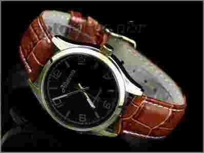 Koperta w kolorze złotym , tarcza w kolorze brązowym refleksyjnym ,cyfry złote - dobrze czytelne , wskazówki złote . Pasek w kolorze brązowym , wzmacniany ozdobnymi przeszyciami na krawędziach, wykonany z skóry ekologicznej . Szkło wypukłe- odporne na zarysowania .