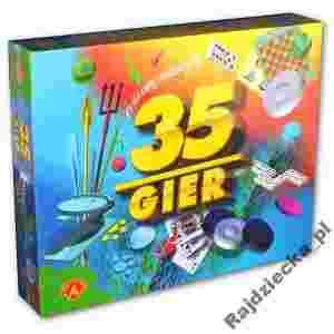 op. 30,5x24,5x5 cm Opis produktu: 35 gier to uniwersalny zestaw gier. Można w nim znaleźć klasyczne gry planszowe, zręcznościowe, logiczne. Zestaw 35 gier to zestaw, który sprawi wiele radości i zapewni sporo emocji każdemu, bez względu na wiek i upodobania. Gry przeznaczone: dla 1 lub więcej graczy, w wieku od 5 lat.