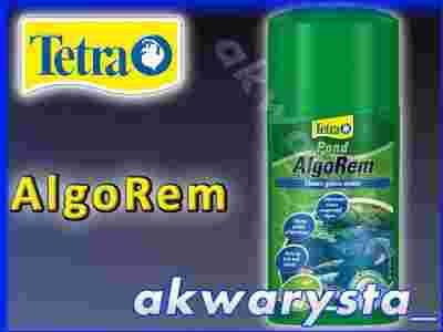 Tetra Pond AlgoRem to środek w postaci zawiesiny, który zapewnia szybkie i pewne oczyszczenie wody z glonów planktonowych ("zielonej wody")oraz zmętnień bez zakłócenia równowagi biologicznej stawu. Stosowany zgodnie z instrukcją jest całkowicie bezpieczny. Składniki AlgoRem-u wiążą unoszące się glony i inne drobiny w biologicznie redukowalne płatki, które zbijają się ze sobą i wypływają chwilowo na powierzchnię wody w postaci spienionej zawiesiny. W tym momencie należy je wyłowić przy pomocy siatki np. firmy Tetra. Tym samym z wody usuwane są nadmiary substancji odżywczych co zapobiega dalszemu rozwojowi glonów. Po opadnięciu na dno, zawiesiną glonów wraz z innymi cząstkami zanieczyszczeń można również usunąć poprzez filtracje.
