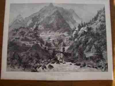 ALPY KOLEJ WIADUKT KOLEJNICTWO drzeworyt 1883 r.