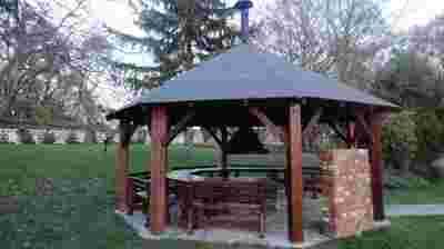 Wyposażenie: komin z czopuchem (możliwość palenia ogniska w altanie)