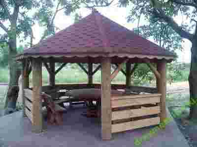 Dach altany składa się z ośmiu części i pokryty jest gontem bitumicznym termozgrzewalnym , a wszystkie łączenia są wykończone także gontem i zapewniają nieprzemakalność dachu !