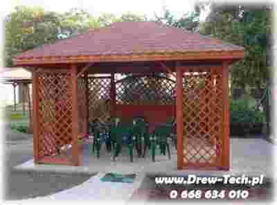 Witam Państwa. Zapraszam do zapoznania się z ofertą firmy Drew-Tech. Jesteśmy producentem konstrukcji drewnianych. Na dzisiejszej aukcji proponuję Państwu Altanę ogrodową "Light". Prezentowana altana jest w rozmiarze 4,0mx4,0m. Altana Light charakteryzuje się konstrukcją opartą o 12słupów nośnych. Konstrukcja tego typu wyróżniają się wysoką estetyką oraz stabilnością. Altana dodatkowo może zostać wyposażona w ścianki, wykonane według pomysłu naszego lub klienta.
