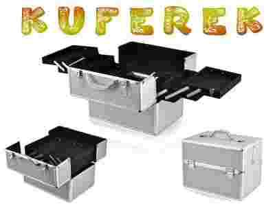 Idealny dla kosmetyczek i manicurzystek mobilnych z aluminiowym stelażem, w modnym, srebrnym kolorze, zaprojektowany tak aby można było w nim zmieścić wszystkie potrzebne akcesoria. W środku kuferka znajduje się 6 wysuwanych półeczek, a pod nimi obszerny pojemnik mieszczący swobodnie lampę UV 36 W (dostępną w naszej ofercie). Wnętrze wyścielone jest czarnym, aksamitnym, miłym w dotyku materiałem.