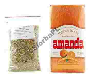 Fantastyczne walory smakowe i dobre właściwości pobudzające to główne atuty tej mate. Walory smakowe podnosi cytrusowa nuta drzewa pomarańczy a aromat owocowy jest wyraźny i utrzymuje się dość długo. Łagodna w smaku lecz wyraźnie da się odczuć delikatną goryczkę, cierpkość, kwaskowatość i słodycz. Bogate źródło witaminy B6, która zapewnia prawidłowe funkcjonowanie układu nerwowego. Amanda Pomarańczowa pochodzi z plantacji w północno-argentyńskiej prowincji Misiones, założonej na początku ubiegłego wieku przez polskich osadników.