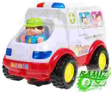 Wydaje przy tym dźwięki: syreny pogotowia ratunkowego, klaksonu oraz rozruch silnika.
