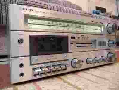 Mam do sprzedania wzmacniacz+ tuner+ magnetofon Japońskiej produkcji Silver. Model: SS 110. W 100% sprawny. Bardzo dobry stan techniczny jak i wizualny. Stan jak nowy!! Nigdy nic nie było naprawiane. Data produkcji: 31.03.1980r. Obudowa nie posiada ani jednej ryski. Piękne duże chromowane gałki.