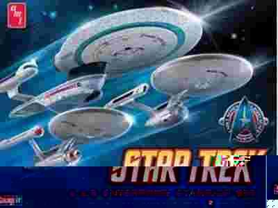 Zestaw 3-w-1 statków kosmicznych Star Trek Enterprise, w skali 1:2500, wyprodukowany przez amerykańską firmę AMT.