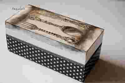 Amygdale decoupage szkatulka herbaciarka sztućce