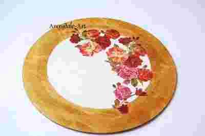Amygdale decoupage tacka taca okragla kwiaty roze
