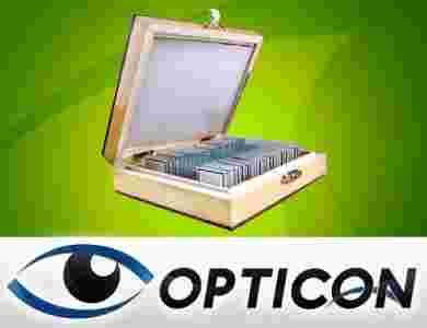 Komplet 25 wysokiej klasy preparatów biologicznych z zakresu anatomii, przeznaczonych do oglądania pod mikroskopem.