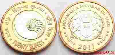 ANDAMAN I NICOBAR 20 RUPII 2011 MUSZLA BIMETAL UNC