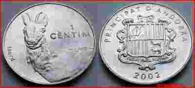 ANDORA 1 CENTIM 2002 ZWIERZĘTA KOZA - MENNICZA