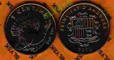 ANDORA /KM-181/ 5 CENTIMS 2002 r. GŁUSZEC