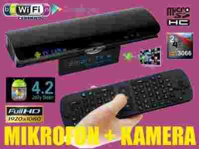 ANDROID TV BOX DUAL CORE V3 to dedykowany do komunikacji głosowej oraz video dwurdzeniowy komputer wyposażonych w kamerkę oraz mikrofon - rozwiązanie idealne do video rozmów poprzez Skype. Urządzenie pracuje pod kontrolą ANDROID 4.2.2 JELLY BEAN i łatwo zmieni każdy telewizor ze złączem HDMI lub AV w multimedialne centrum rozrywki.