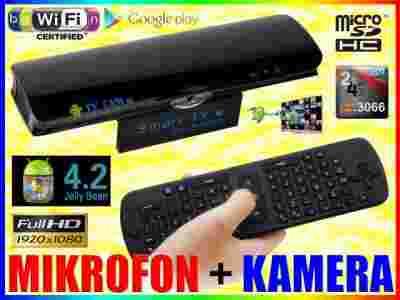 ANDROID TV BOX DUAL CORE V3 to dedykowany do komunikacji głosowej oraz video dwurdzeniowy komputer wyposażonych w kamerkę oraz mikrofon - rozwiązanie idealne do video rozmów poprzez Skype. Urządzenie pracuje pod kontrolą ANDROID 4.2.2 JELLY BEAN i łatwo zmieni każdy telewizor ze złączem HDMI lub AV w multimedialne centrum rozrywki.