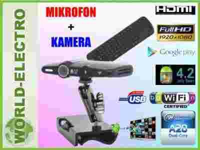 ANDROID TV BOX DUAL CORE HD02 to dedykowany do komunikacji głosowej oraz video dwurdzeniowy komputer wyposażonych w kamerkę 5MP oraz mikrofon - rozwiązanie idealne do video rozmów poprzez Skype. Urządzenie pracuje pod kontrolą ANDROID 4.2.2 JELLY BEAN i łatwo zmieni każdy telewizor ze złączem HDMI lub AV w multimedialne centrum rozrywki.