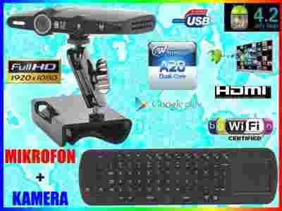 ANDROID TV BOX DUAL CORE HD02 to dedykowany do komunikacji głosowej oraz video dwurdzeniowy komputer wyposażonych w kamerkę 5MP oraz mikrofon - rozwiązanie idealne do video rozmów poprzez Skype. Urządzenie pracuje pod kontrolą ANDROID 4.2.2 JELLY BEAN i łatwo zmieni każdy telewizor ze złączem HDMI lub AV w multimedialne centrum rozrywki.