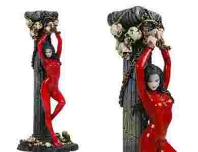 ANDROMEDA CANDLESTICK STATUE - 27 CM Nemesis Now prezentuje kolekcjonerską statuetkę-świecznik Andromeda o wysokości 27 cm. Kobieta wampir złożona w ofierze, przykuta do kolumny z czaszkami. Wykonana z polyresin, licencjonowana, ręcznie malowana i rzeżbiona z dbałością o szczegóły. Statuetka może służyć jako świecznik. Ilości limitowane