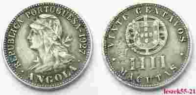 ANGOLA PORTUGALSKA 4 MACUTAS 20 CENT 1927 RZADKOŚĆ