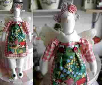 Anioł Fartuszek w domki 100% rekodzielo tilda
