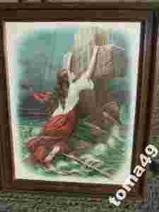 ANIOŁ STRÓŻ -stary obraz za szkłem II