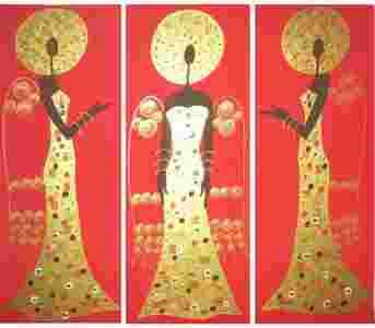 UNIKATOWA SERIA ":ANIOŁY SZCZĘŚCIA , ZDROWIA , MIŁOŚCI I DOBOBYTU(3 x 25 cm x 65 cm)" TYLKO TUTAJ TŁO W PRZEPIĘKNYM KOLORZE SOCZYSTEJ CZERWIENI, SUKNIE W PRZEPIĘKNYM ODCIENIU ZŁOTA Z DODATKAMI W KOLORZE , ECRU I WIŚNI I MNÓSTWEM DELIKATNYCH, ELEGANCKICH APLIKACJI!!!!