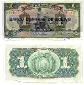 BOLIWIA 1 BOLIVIANO nd/ 1929
