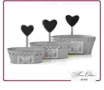 Metalowe osłonki na doniczki z kolekcji walentynkowej Anna Chloe's Home.