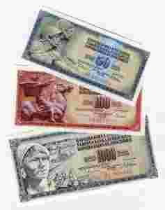 ANS: JUGOSŁAWIA 50+100+1000 DINARÓW ZESTAW