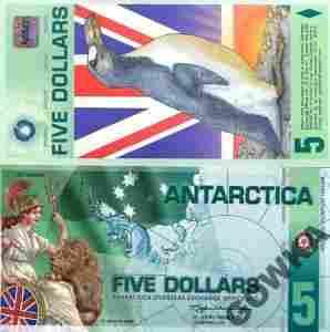 Antarktyda 5 Dolarów 2008 Polimer stan I UNC