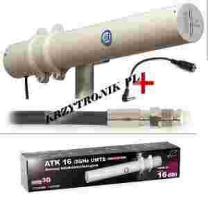 Antena kierunkowa ATK-16/2GHz przeznaczona jest to stosowania w systemach telefonii UMTS / HSDPA / 3G pracujących w paśmie 1,9-2,1 GHz (NAJSZYBSZY INTERNET). Znakomicie rozwiązuje typowy problem, iż sygnał w miejscu gdzie jest laptop z kartą UMTS lub telefon jest za słaby do poprawnej pracy. W takiej sytuacji zazwyczaj wystarczy dołączenie do telefonu lub modemu anteny pozwalającej na uzyskanie wystarczającego sygnału.