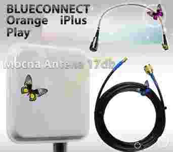 - antena panelowa 17dBi z mocowaniem na rurę - 5m niskostratnego kabla antenowego ze złączem FME