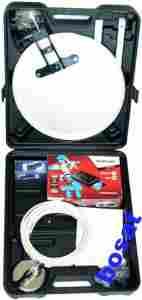 IDEALNY ZESTAW ANTENOWY POD TURYSTYKĘ NA ASTRĘ LUB HOTBIRDA W WALIZCE PLASTIKOWEJ MIESZCZĄCA INNE AKCESORIA TVSAT Z RÓŻNYMI SPOSOBAMI MOCOWANIA.