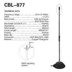 Przewód antenowy zakończony jest końcówką pasującą idealnie do każdego modelu CB radia.