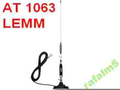 Antena samochodowa magnesowa, przeznaczona do samochodów ciężarowych, dostawczych, osobowych, gdzie ma zapewniać przyzwoity zasięg, a jednocześnie nie będzie trzeba jej zbyt często składać. Mocowanie na motylek daje możliwość szybkiego położenia anteny przy wjeździe do garażu lub na parking w budynku. Dzięki swojej podwójnej cewce antena Lemm AT-1063 zapewnia zasięg porównywalny z antenami dwukrotnie dłuższymi od niej - dane szacunkowe.