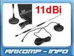 posiada wzmocnienie 11 dBi co pozwala w większości sytuacji uzyskiwać