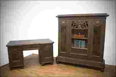 Przedstawiamy Państwu piękny zestaw mebli z czasów międzywojennych. Mebel ten pochodzi z Niemiec i został wykonany z drewna dębowego. Zestaw ten będzie się pięknie prezentował w każdym gabinecie.