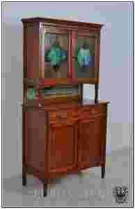 ANTYK KREDENS SECESJA WITRAŻ NIEBIESKIE SZYBKI