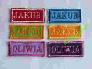 Oferujemy aplikacje termoklejące dla dzieci i nie tylko. Personalizowana aplikacja jest wykonana z kolorowego filcu o wymiarach ok. 2cm X 6cm, pod spodem jest podklejona
