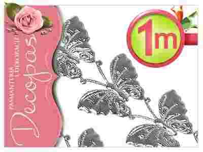 aplikacje MOTYLE duże na taśmie SREBRNE 1m/38szt