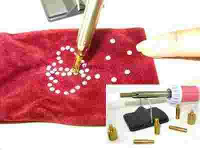 Doskonałe narzędzie do zdobień wszelkich wyrobó z tkaniny.Wygodny ergonomiczny uchwyt, podstawka do oparcia aplikatora w trakcie pracy.