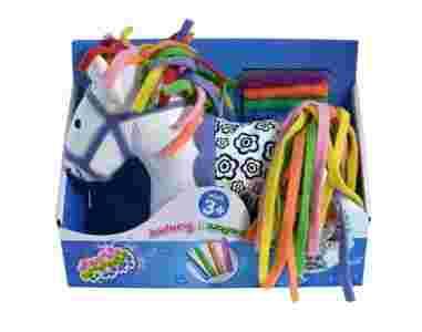 W skład tego zestawu wchodzi kucyk-maskotka i 4 zmywalne flamastry. Na łebku kucyka znajdują się kolorowe paseczki przypominające grzywę. Podobne ozdoby tworzą jego ogon. Kucyk posiada również fioletową uzdę i siodło ozdobione kwiatkami.
